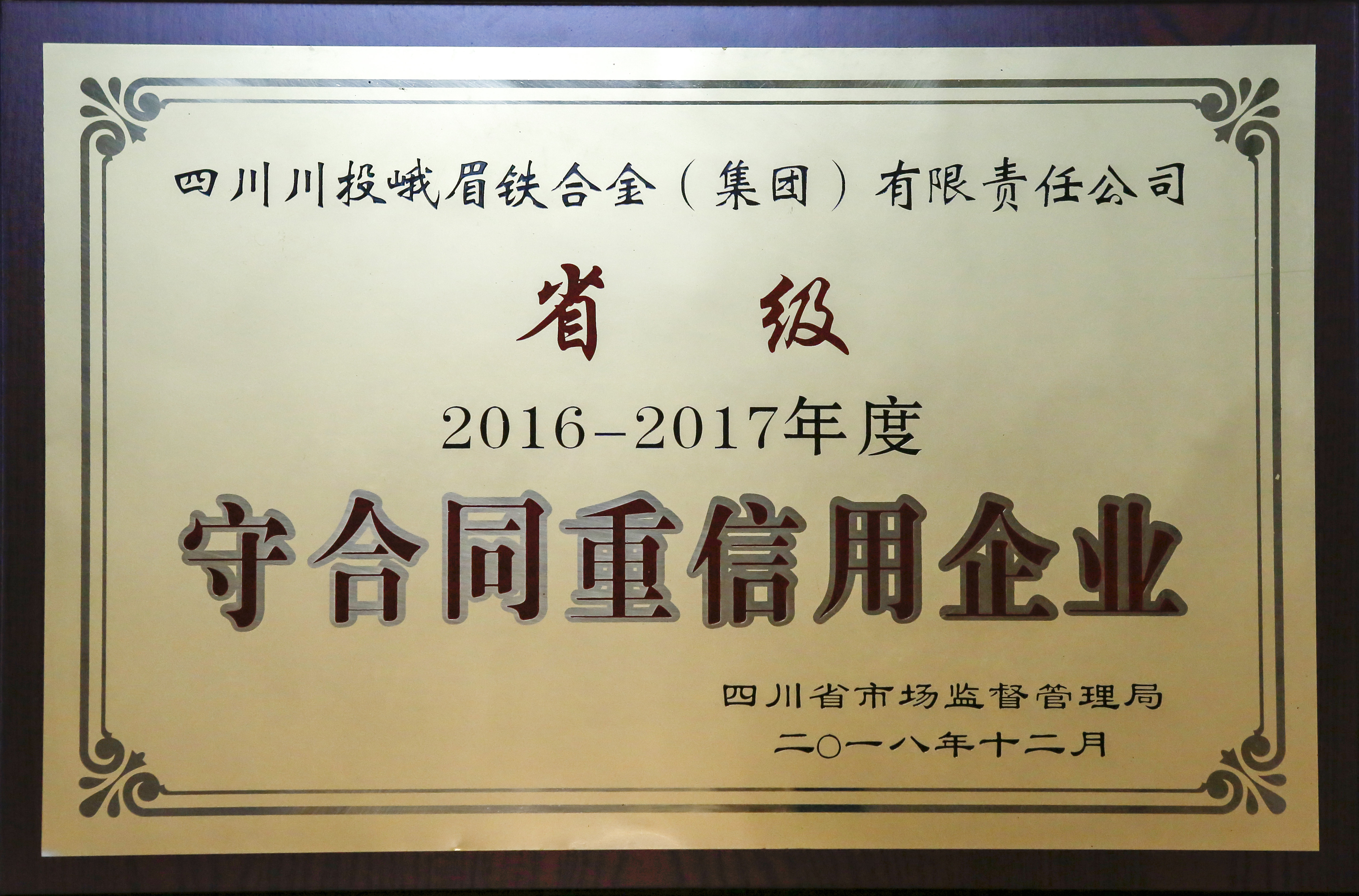 2016-2017年度省級守合同重信用企業(yè)