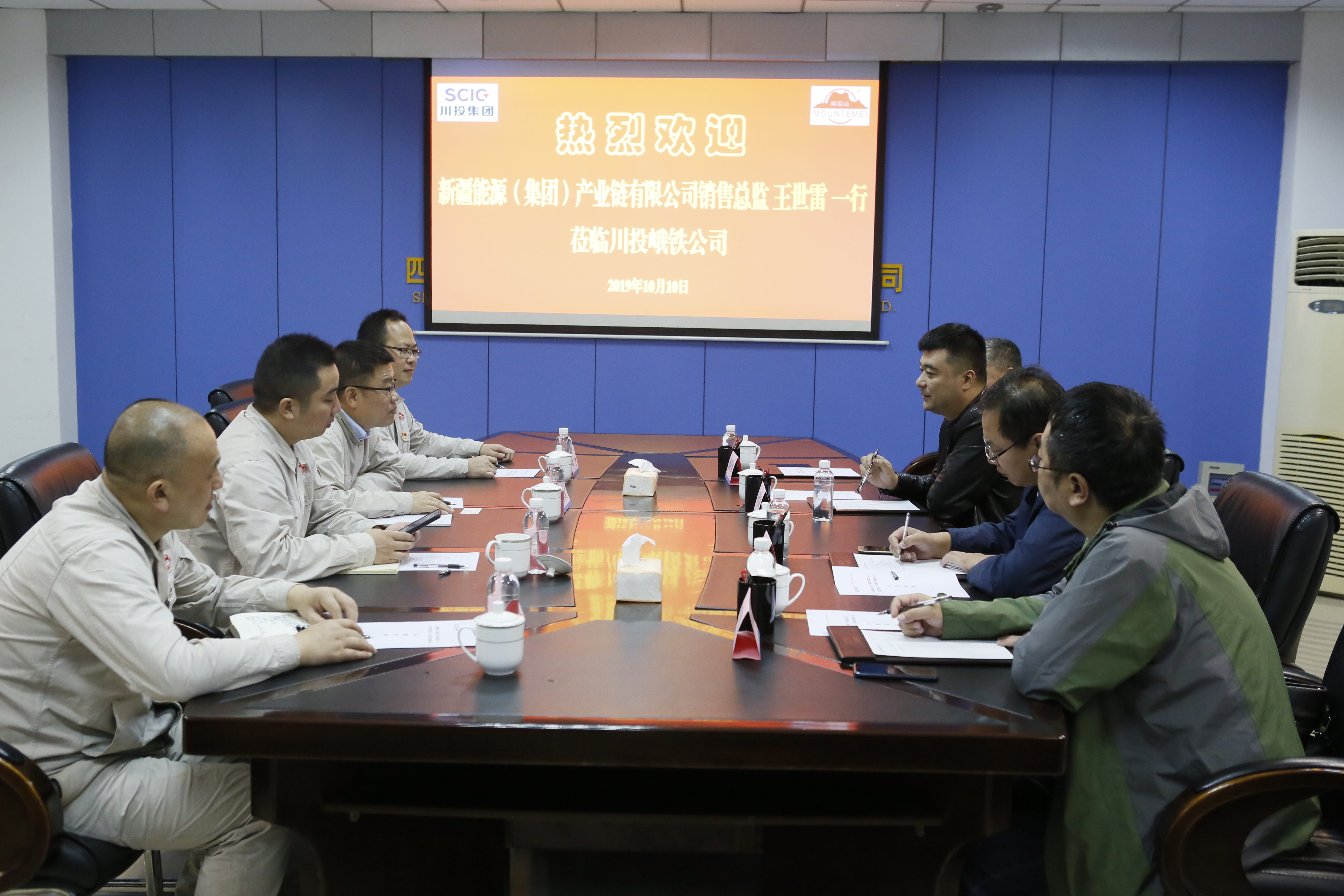 10月10日,新疆能源(集團(tuán))產(chǎn)業(yè)鏈有限公司王世雷總監(jiān)一行4人到訪川投峨鐵公司,受川投峨鐵公司黨委書記、總經(jīng)理唐華應(yīng)委托,公司黨委副書記、副總經(jīng)理陳新龍,副總經(jīng)理姜志川、營銷總監(jiān)周全在公司908會議室熱情接待王世雷一行。