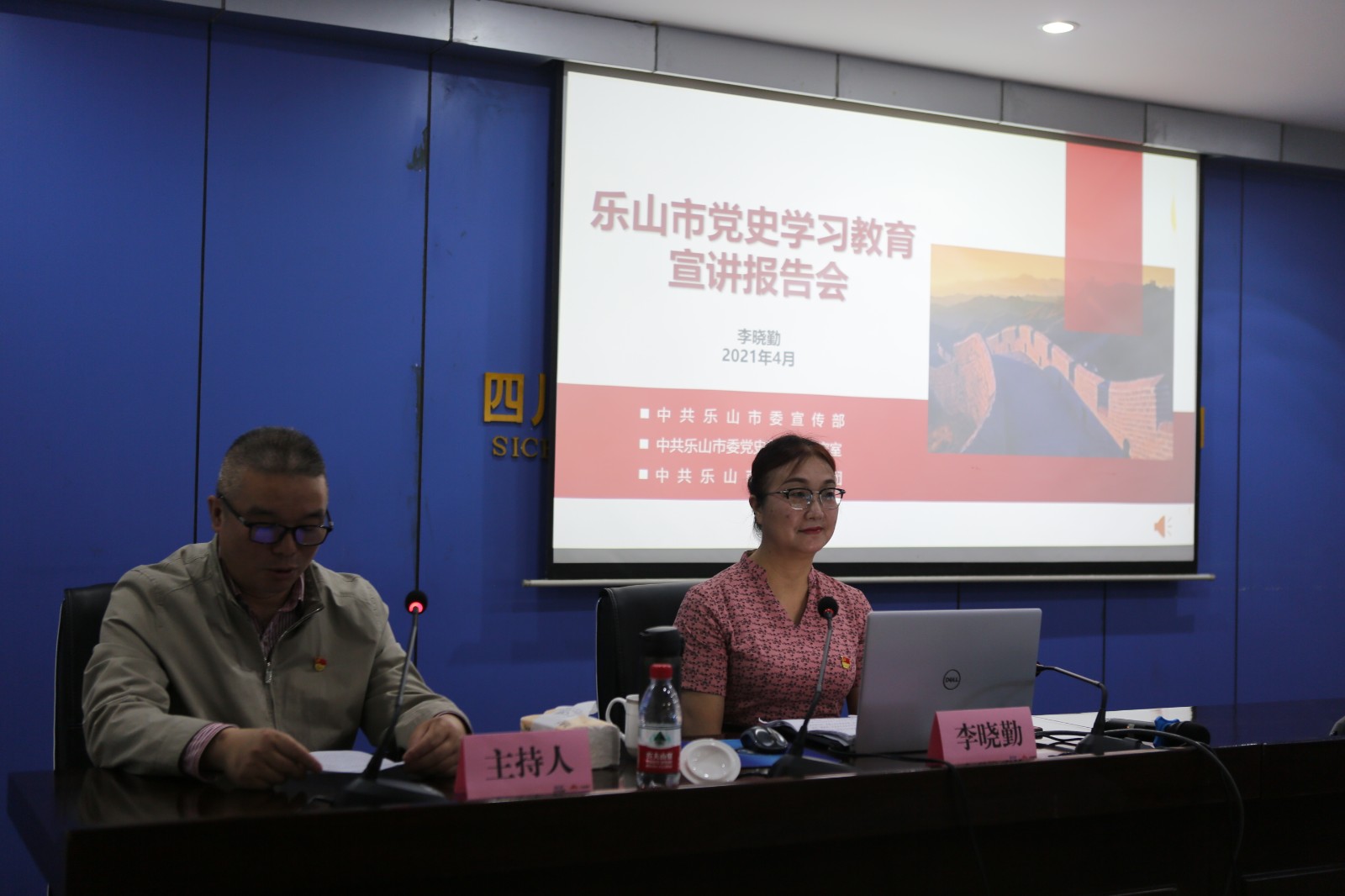 樂山市國資委黨委委員、機關黨委書記文力生主持宣講報告會,并對樂山市委和市國資委黨委開展黨史專題宣講的目的要求和意義向與會人員進行了動員講話。李曉勤副教授以四川省、樂山市生動的歷史案例和詳實的黨史文獻,從四個方面系統(tǒng)講解了習近平總書記關于黨的歷史的重要論述,深刻闡釋了開展黨史學習教育的重大意義,全面講述了中國共產黨百年奮斗的光輝歷程和歷史性貢獻,重點闡述了開展黨史學習教育要深刻把握的重點等內容,李曉勤教授圖文并茂的講解方式、生動形象的語言、深入淺出地闡述,讓與會同志們深刻了解了黨的百年奮斗歷程和黨的偉大精神,受益匪淺,催人奮進,收獲了學史明理、學史增信、學史崇德、學史力行與學以致用的成效。