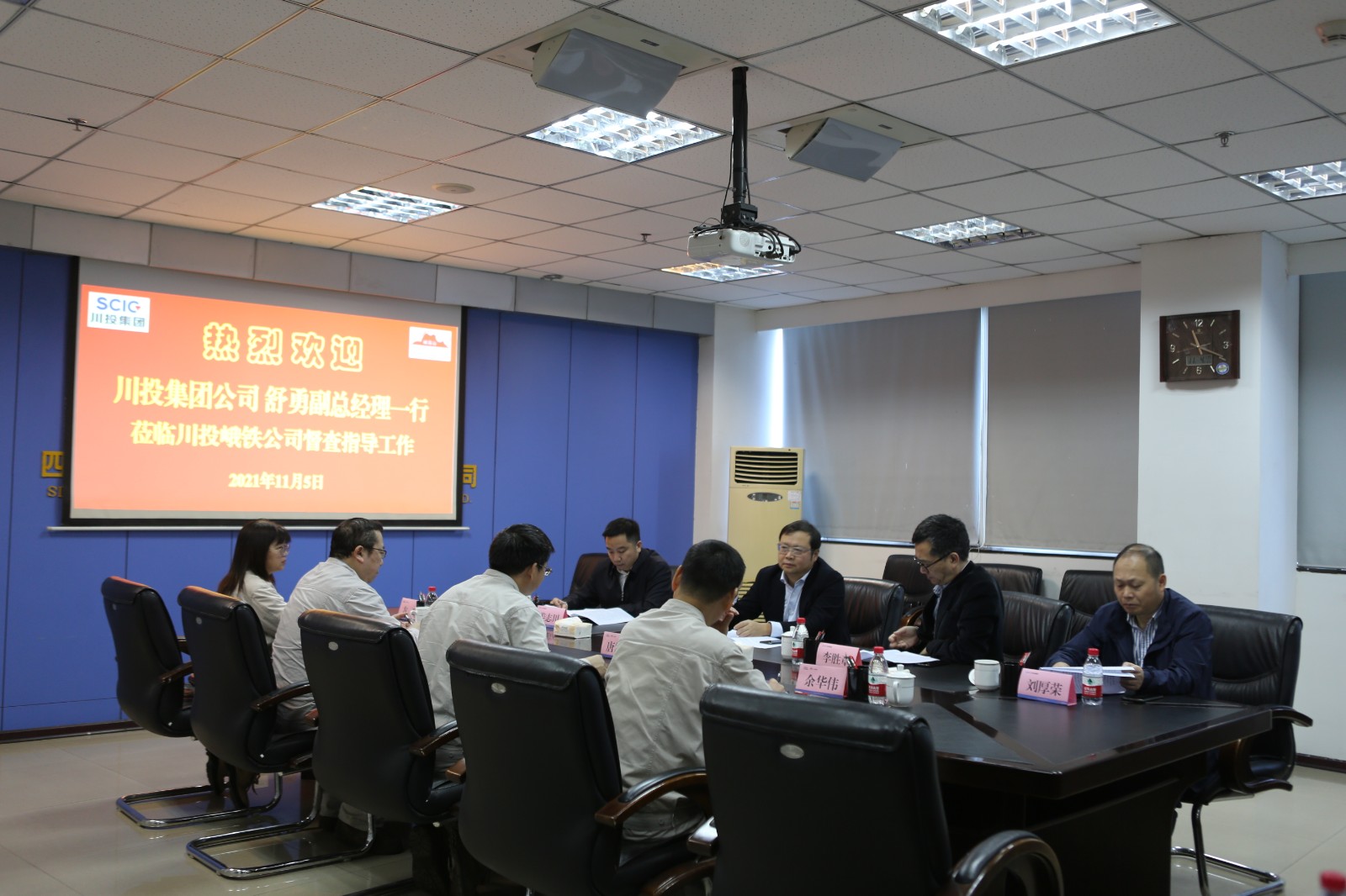 11月5日,川投集團(tuán)黨委委員、副總經(jīng)理舒勇,總經(jīng)理助理、經(jīng)營管理部部長李勝章一行4人到川投峨鐵公司調(diào)研指導(dǎo)工作,川投峨鐵公司黨委書記、董事長唐華應(yīng)一行陪同調(diào)研。