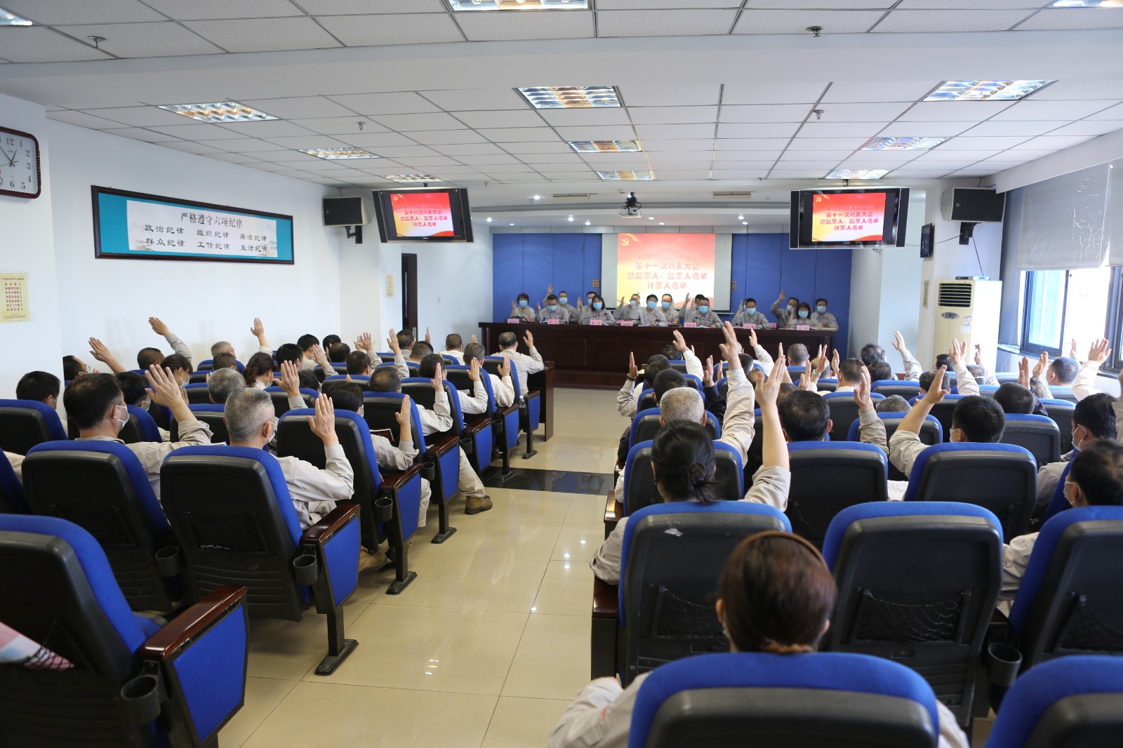 按照《中國(guó)共產(chǎn)黨基層組織選舉工作條例》規(guī)定,大會(huì)以無(wú)記名投票方式,差額選舉出公司黨委第十一屆委員會(huì)委員、紀(jì)律檢查委員會(huì)委員。最后,大會(huì)在全體黨員代表齊唱的《國(guó)際歌》聲中勝利閉幕。