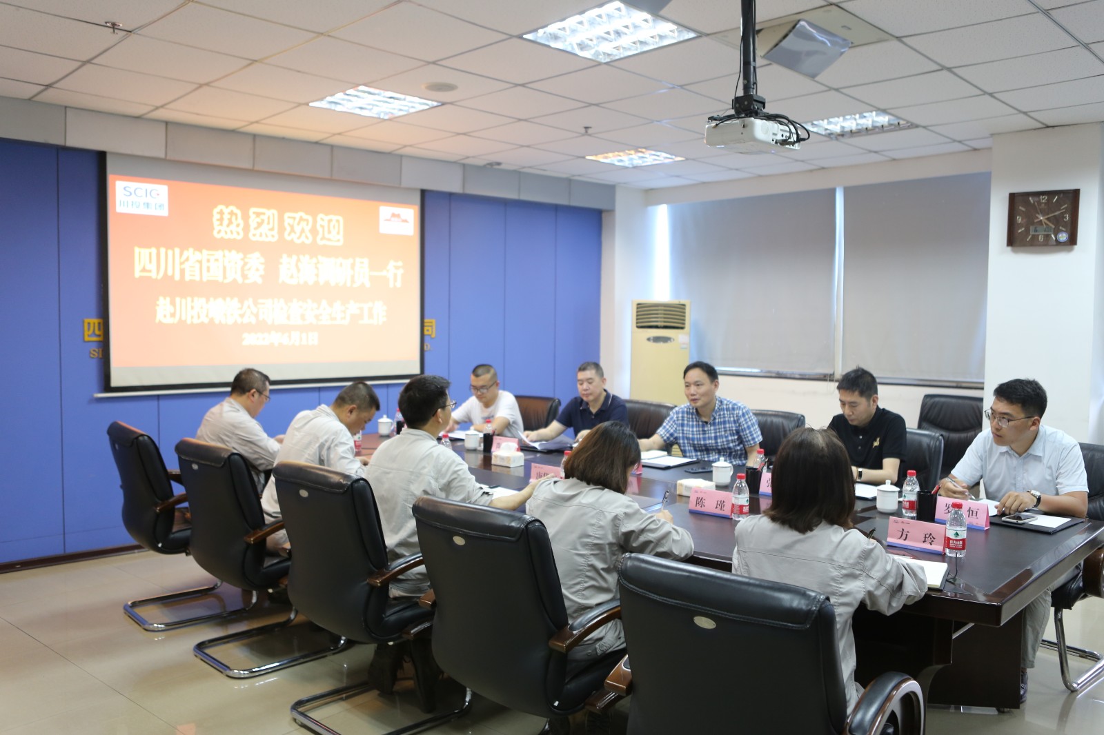 6月1日,四川省國資委社會責任處調(diào)研員趙海一行在川投集團公司安全環(huán)保部陶世賢部長陪同下,到川投峨鐵公司檢查安全生產(chǎn)工作。公司黨委書記、董事長唐華應,黨委副書記、總經(jīng)理陳新龍等領導和部門負責人陪同檢查。