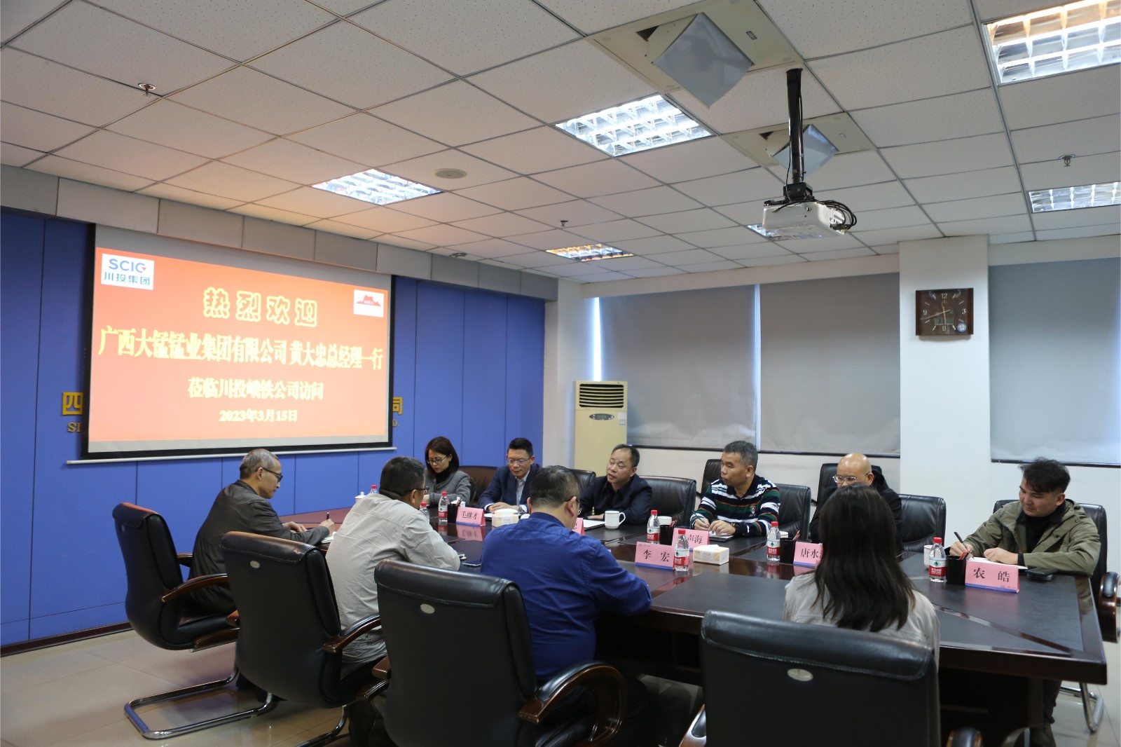 陳新龍對黃大忠一行到訪公司表示熱烈歡迎,對廣西大錳錳業(yè)集團有限公司對峨鐵多年來的支持表示感謝,并陪同來訪客人觀看了峨鐵歷史沿革宣傳片,向客人介紹了公司近期經(jīng)營情況;常務(wù)副總經(jīng)理李宏對2022年公司錳礦購銷情況作了簡要回顧。