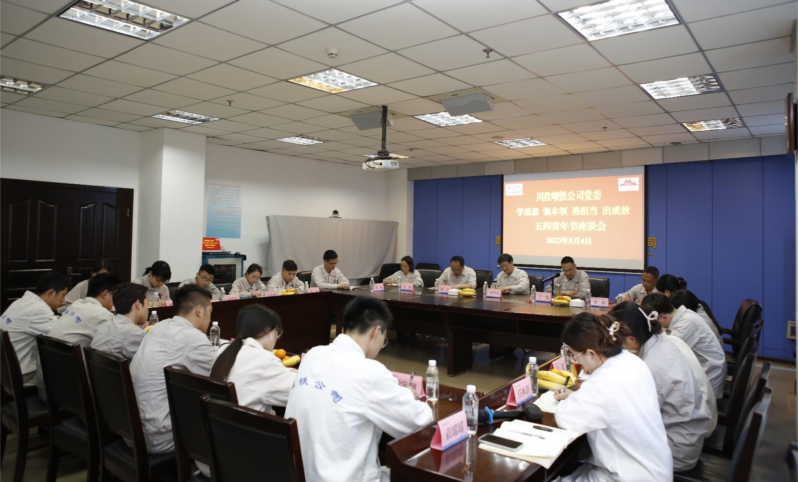 為扎實(shí)推進(jìn)青年黨員學(xué)習(xí)貫徹習(xí)近平新時代中國特色社會主義思想主題教育,進(jìn)一步大力弘揚(yáng)“五四”精神,做實(shí)“后繼有人”。5月4日,川投峨鐵公司黨委在908會議室組織召開“學(xué)思想 強(qiáng)本領(lǐng) 勇?lián)?dāng) 出成效”“五四”青年節(jié)主題座談會。公司黨委書記、董事長唐華應(yīng)參會并講話,會議由公司黨委委員、紀(jì)委書記丁憲主持。