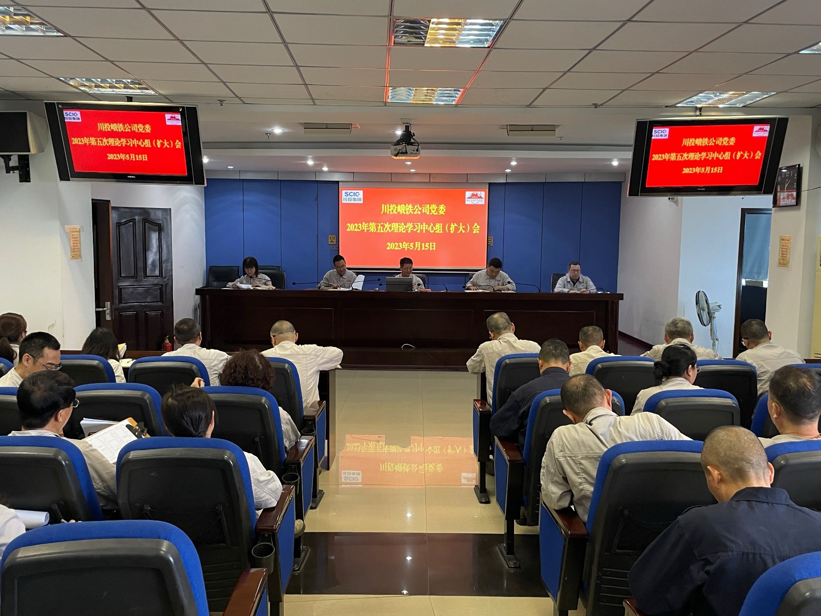 5月15日,川投峨鐵公司黨委在1011會議室召開2023年第五次理論學習中心組(擴大)會。公司黨委書記、董事長唐華應主持會議。