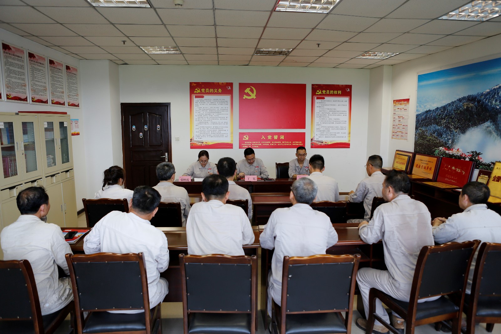 丁憲為新黨員佩戴黨徽、發(fā)放《中國共產黨章程》和黨員政治理論學習筆記本,并代表公司黨委對新黨員表示衷心的祝賀,同時提出三點希望和要求:要牢記入黨誓詞,以共產黨員標準嚴格要求自己,要嚴格遵守黨的紀律,不斷增強大局意識,堅定不移地在思想上、行動上與黨組織保持高度一致。要充分發(fā)揮先鋒模范作用,時時發(fā)揮黨員的先進性,積極應對改革和發(fā)展中出現(xiàn)的新情況新問題,不斷提高自己的政治覺悟、綜合素質和工作能力,以過硬的素質團結凝聚職工群眾。要深入學習貫徹習近平新時代中國特色社會主義思想,全面領會和認真落實黨的精神,緊密結合自身實際,貫徹落實各級黨委、黨支部部署和要求,端正三觀,吃苦在前,吃虧在前,以實際行動踐行全心全意為人民服務的宗旨。