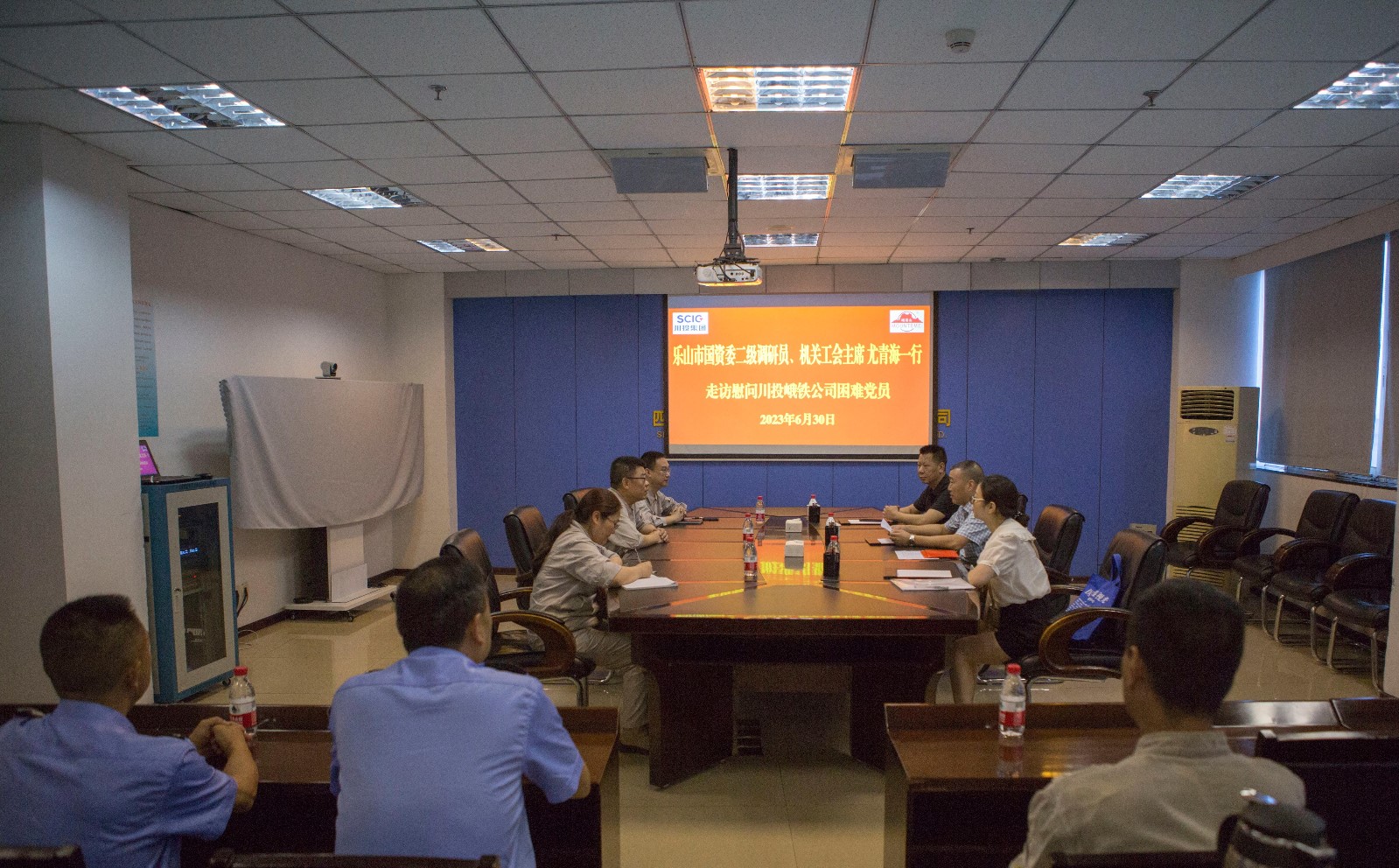 在908會議室,陳新龍對尤青海一行蒞臨川投峨鐵公司走訪慰問表示歡迎,對樂山市國資委黨委長期以來對公司的關(guān)心支持表示感謝,并簡要匯報了公司生產(chǎn)經(jīng)營相關(guān)情況。尤青海向公司困難黨員轉(zhuǎn)達(dá)了樂山市委、市國資委黨委的關(guān)心,詳細(xì)詢問了他們的家庭和生活情況,并為3名同志送上了慰問金,鼓勵他們保持積極樂觀的心態(tài),堅定信心,克服困難。