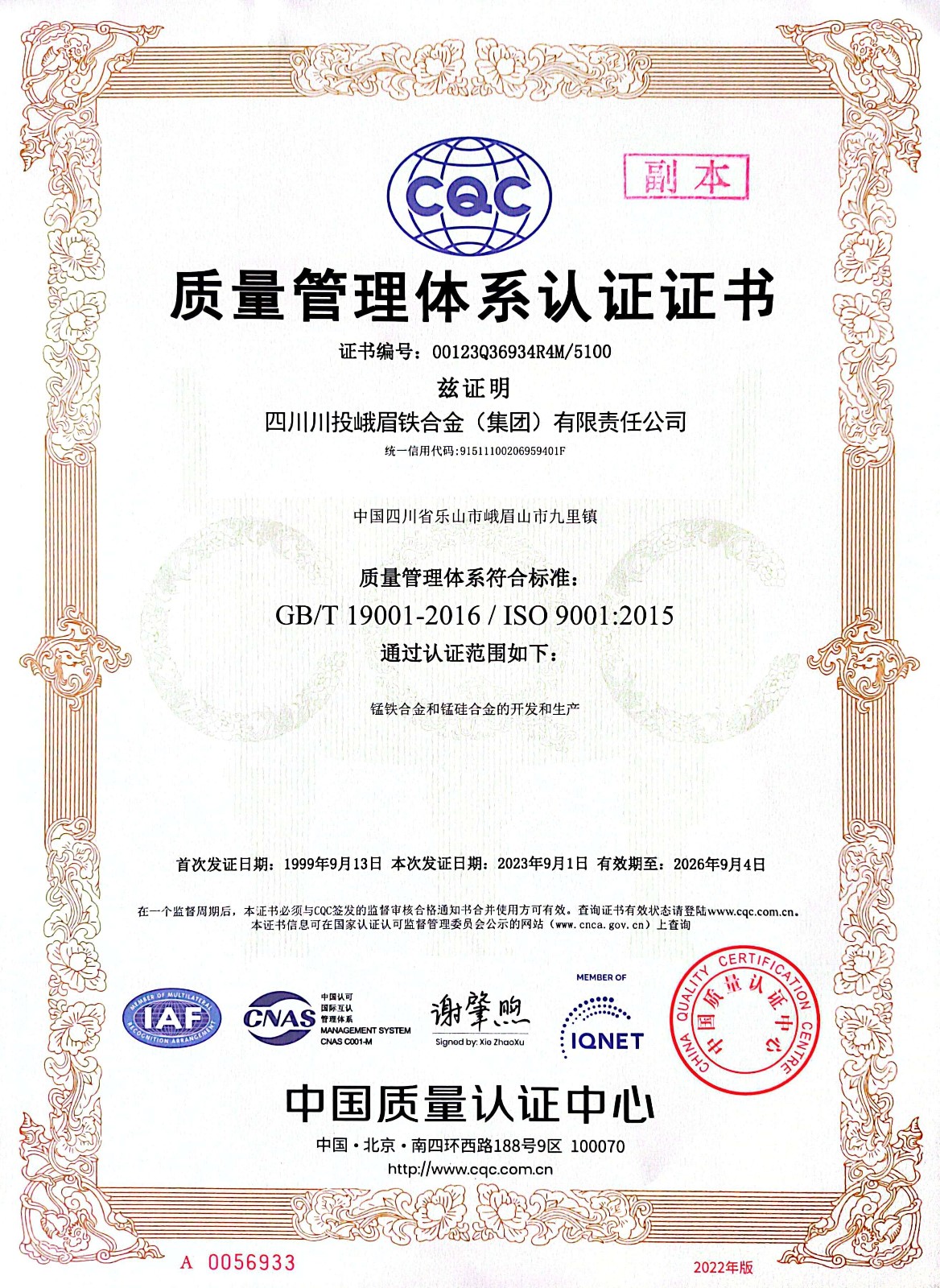 川投峨鐵公司高度重視本次認(rèn)證審核工作。為保證工作的順利推進(jìn),先后成立了內(nèi)部工作組,制訂了審核計(jì)劃,明確了相關(guān)任務(wù)責(zé)任。在各部門的認(rèn)真配合下,公司內(nèi)部審核工作一次性通過,按程序申請了最終外部評定審核。中國檢驗(yàn)認(rèn)證集團(tuán)四川有限公司專業(yè)小組審核檢查后,一致認(rèn)為:川投峨鐵公司質(zhì)量管理體系較為完善,質(zhì)量方針和目標(biāo)符合標(biāo)準(zhǔn)要求和公司實(shí)際情況。質(zhì)量管理體系資料及審核報告經(jīng)評審中心評審確定,推薦認(rèn)證保持川投峨鐵公司的ISO9001質(zhì)量管理體系有效。