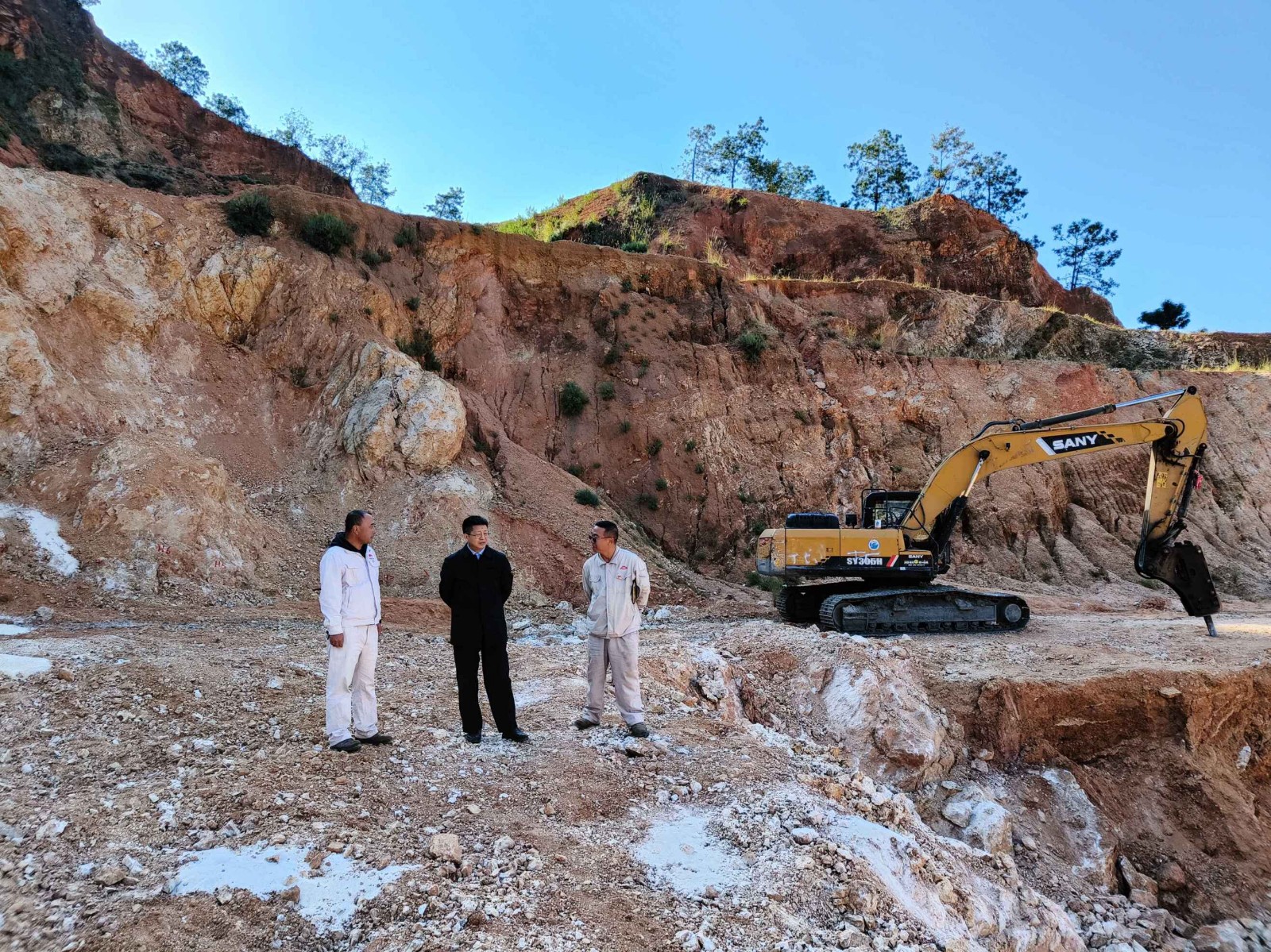 在硅石采場,他強(qiáng)調(diào),一要抓緊抓好“安全生產(chǎn)許可證”復(fù)證的各項(xiàng)工作,確保盡快取證;二要切實(shí)抓實(shí)抓好現(xiàn)場整治的安全管理工作,確保整治安全;三要加強(qiáng)對邊坡治理新建擋土墻的觀察、巡視和淤土清理,確保擋土墻持續(xù)保持正常功能。確保礦山硅石采場安全、有序地進(jìn)行治理。