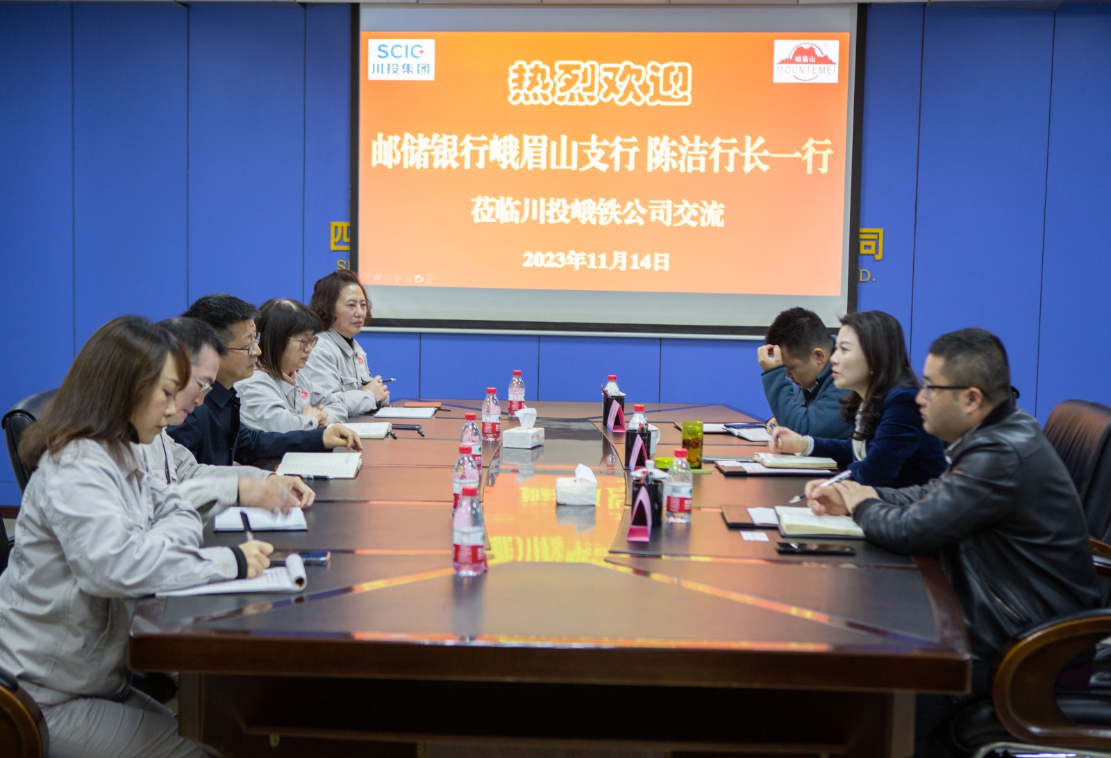 為進一步加強交流互信,深化銀企合作,11月14日,郵儲銀行峨眉山支行行長陳潔一行3人到訪川投峨鐵公司。川投峨鐵公司黨委書記、董事長唐華應,黨委委員、財務總監(jiān)方玲參加了交流座談。