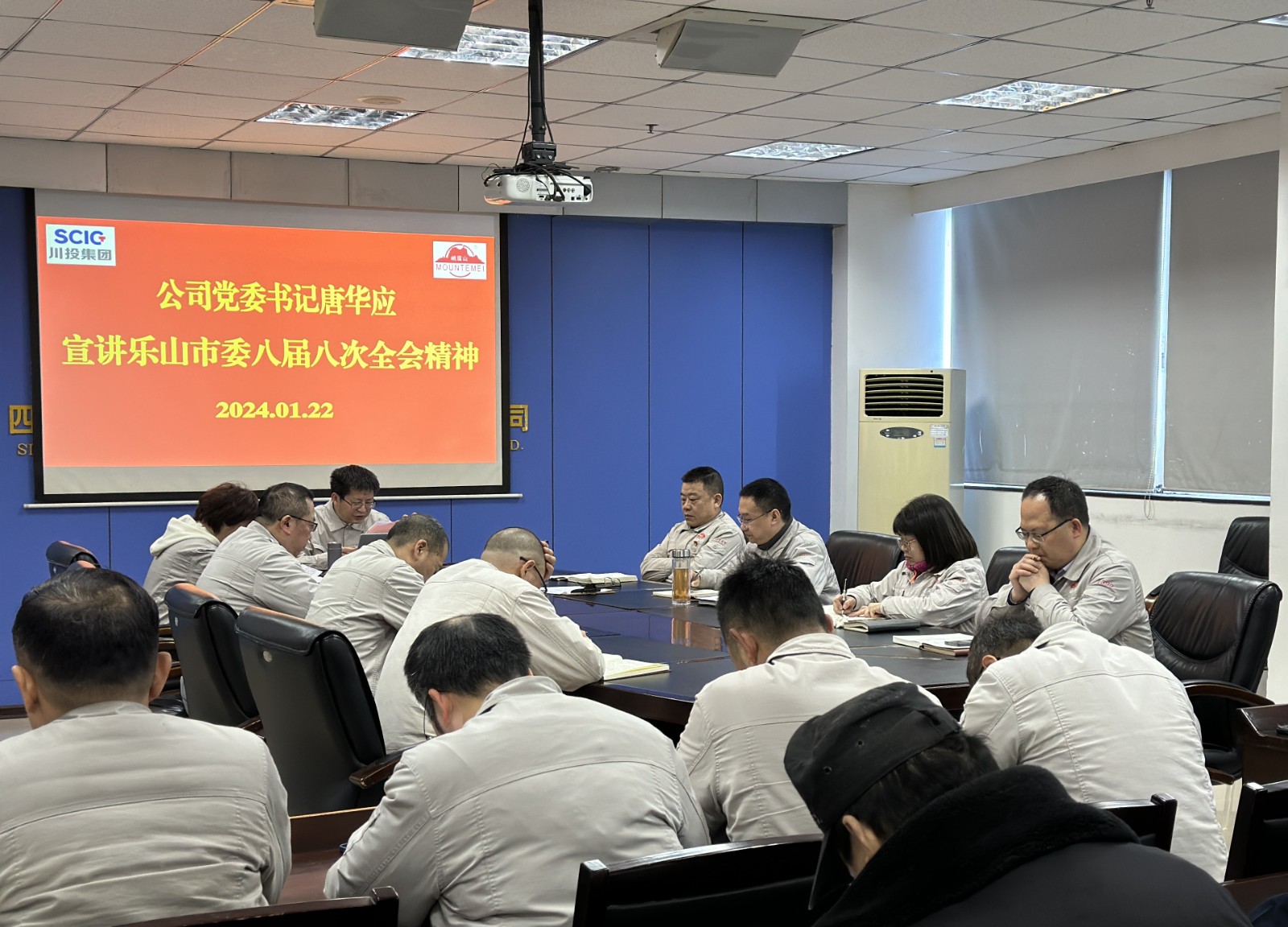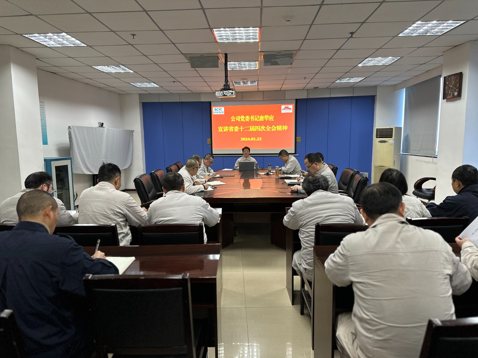 1月22日,川投峨鐵公司黨委書記、董事長(zhǎng)唐華應(yīng)在908會(huì)議室作省委十二屆四次全會(huì)精神和樂山市委八屆八次全會(huì)精神專題宣講。