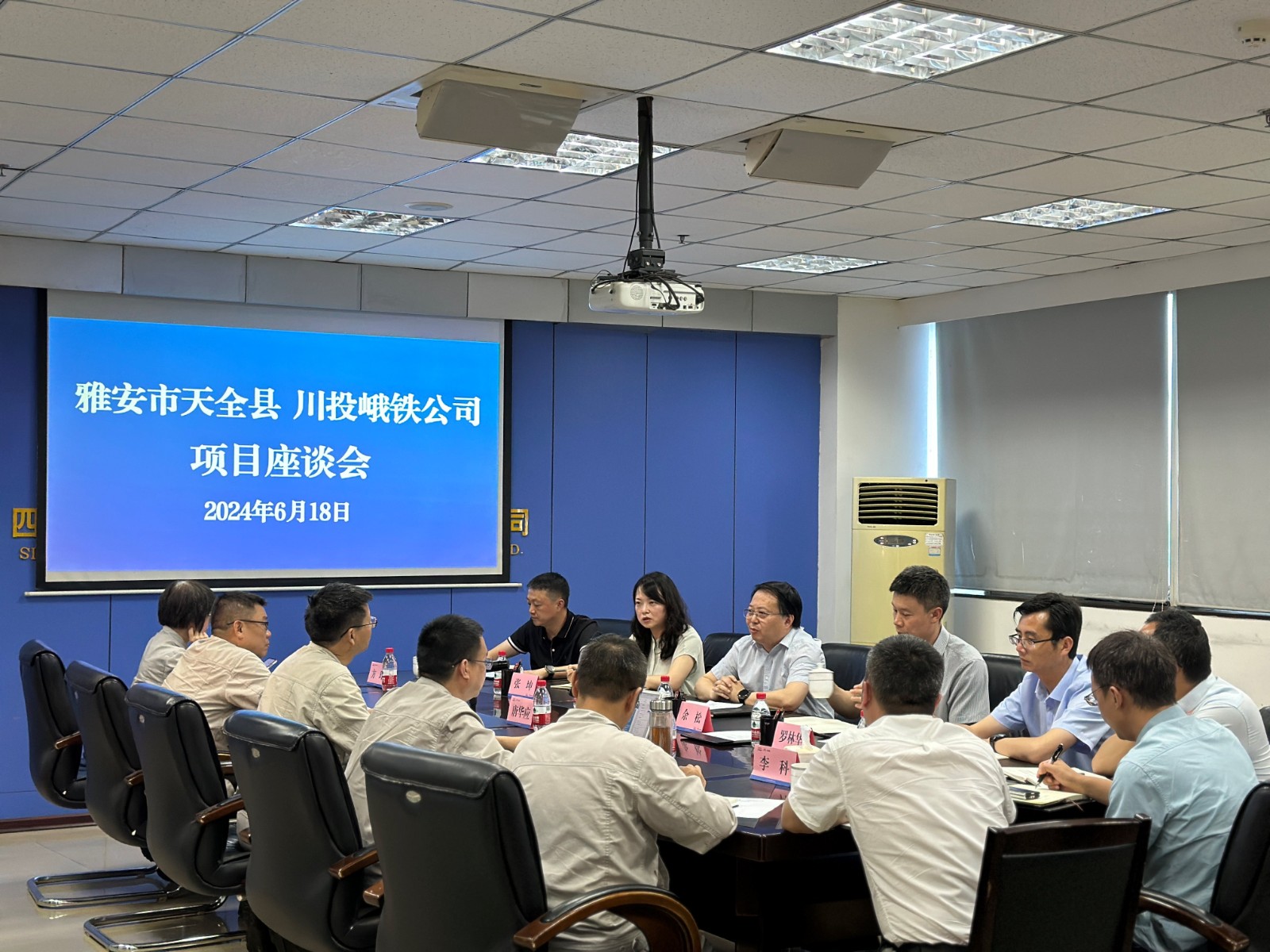 6月18日,天全縣縣委書記余力,縣委常委、縣人民政府常務(wù)副縣長余松,雅安市發(fā)改委環(huán)資科科長張坤等一行到訪川投峨鐵公司,川投峨鐵公司黨委書記、董事長唐華應(yīng),黨委副書記、總經(jīng)理陳新龍在908會議室與代表團一行召開了項目座談會。