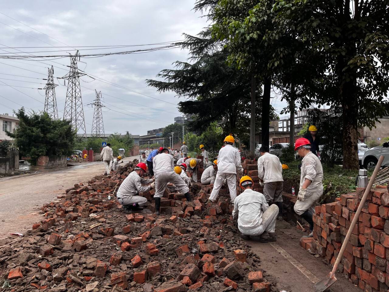 公司職工發(fā)揚吃苦耐勞、自力更生的良好工作作風(fēng),齊心協(xié)力、不怕苦累,頑抗驕陽,鏖戰(zhàn)數(shù)十時,終于在當天21時基本完成了倒塌圍墻第一路段的廢磚清理回收。剩余廢磚已拉回廠區(qū),將在后續(xù)幾天突擊完成清收工作。至此,蘇九路交通已全部恢復(fù)暢通。