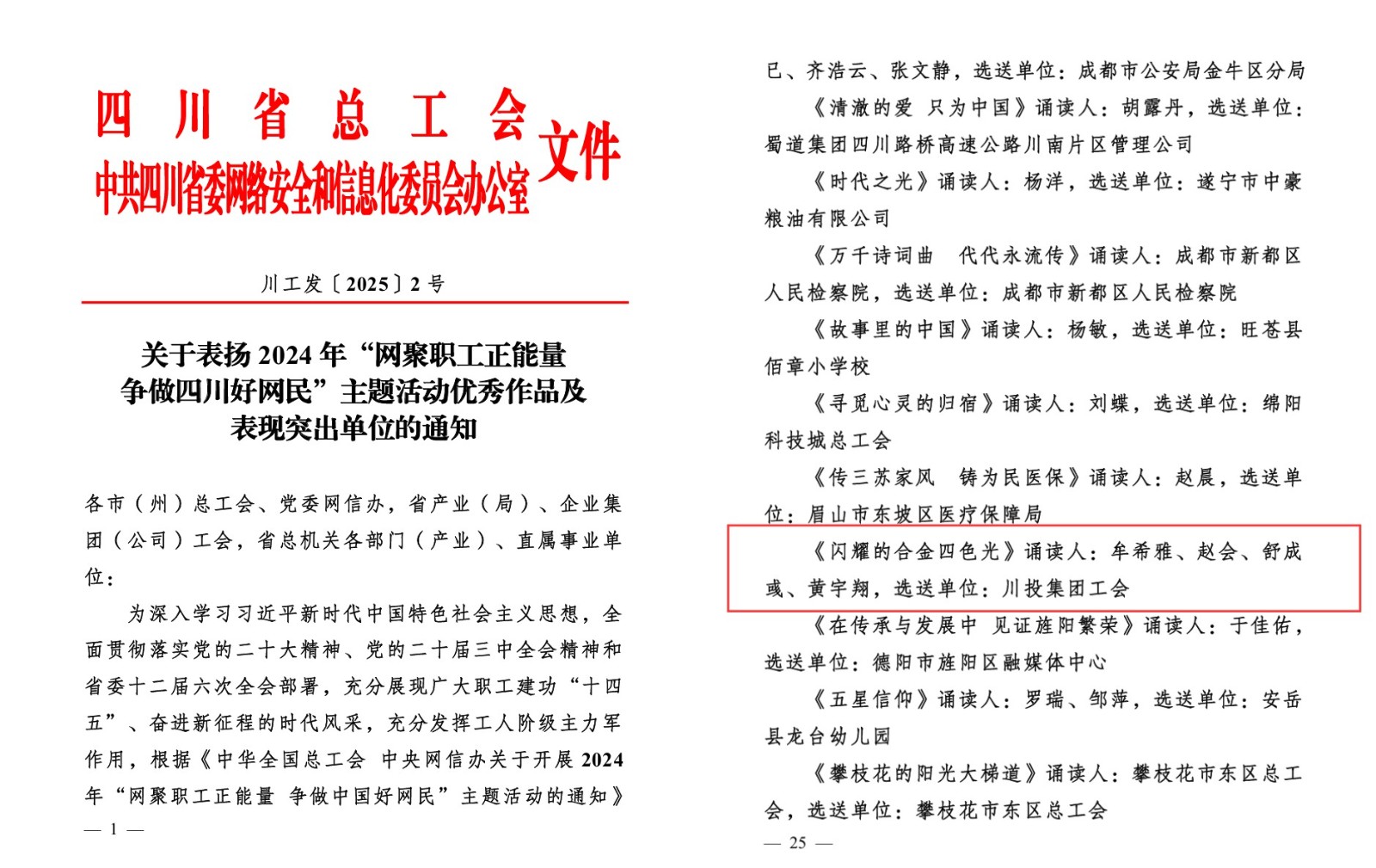 川投峨鐵公司持續(xù)強(qiáng)化黨建引領(lǐng),推進(jìn)黨建與生產(chǎn)經(jīng)營深度融合,開年以來,公司黨委被評(píng)為樂山市2024年度國有企業(yè)基層黨建工作先進(jìn)單位,以黨建品牌創(chuàng)作的誦讀作品《閃耀的合金四色光》獲評(píng)四川省總工會(huì)“網(wǎng)聚職工正能量 爭做四川好網(wǎng)民”主題活動(dòng)優(yōu)秀作品。項(xiàng)目部以“起步即沖刺”的狀態(tài),錨定技改升級(jí)項(xiàng)目總目標(biāo),加快與相關(guān)技術(shù)單位的溝通交流,助推公司技改項(xiàng)目“早開工、快建設(shè)”。進(jìn)出口公司把脈市場動(dòng)向,踩準(zhǔn)“節(jié)奏”實(shí)現(xiàn)錳礦貿(mào)易創(chuàng)效538.7348萬元,為“開門紅”奠定良好基礎(chǔ)。