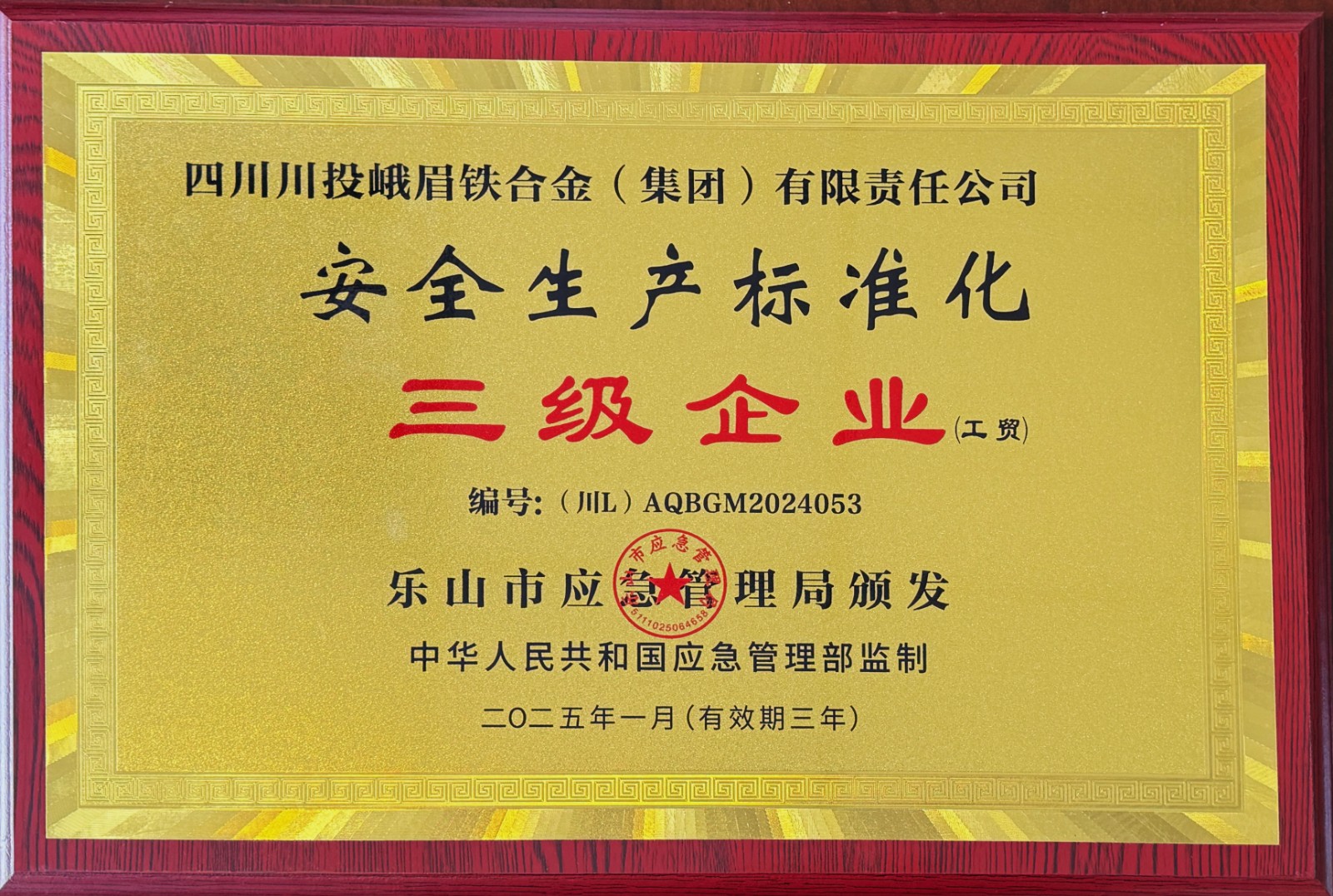 近日,川投峨鐵公司被樂山市應(yīng)急管理局評為“工貿(mào)行業(yè)安全生產(chǎn)標(biāo)準(zhǔn)化三級企業(yè)”,對公司安全生產(chǎn)管理予以了充分肯定。