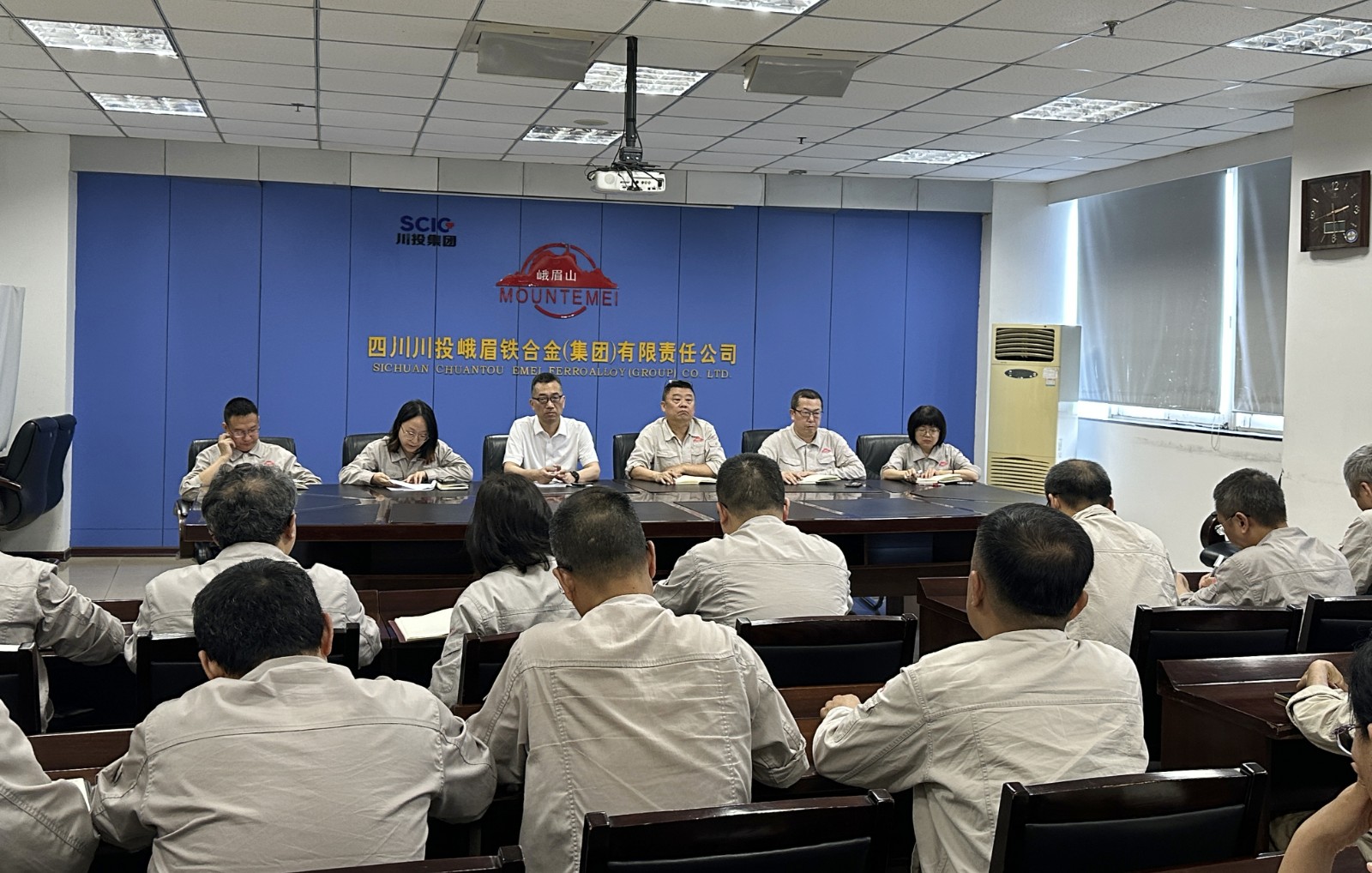 6月5日,川投峨鐵公司召開講政治、明紀(jì)律、守規(guī)矩專題會。會議由公司黨委書記、董事長李勝章主持,公司在家領(lǐng)導(dǎo)班子、中層管理人員共計(jì)34人參會。