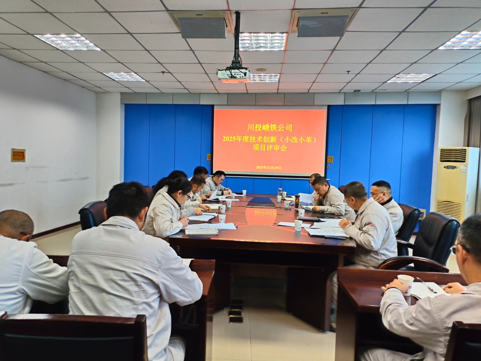 12月29日,川投峨鐵公司在908會議室召開了2025年度科技創(chuàng)新(小改小革)項目評審會。公司黨委書記、董事長、總經(jīng)理陳新龍及公司領(lǐng)導(dǎo)、相關(guān)職能部門負(fù)責(zé)人、各參評項目成果主研人員參加會議。