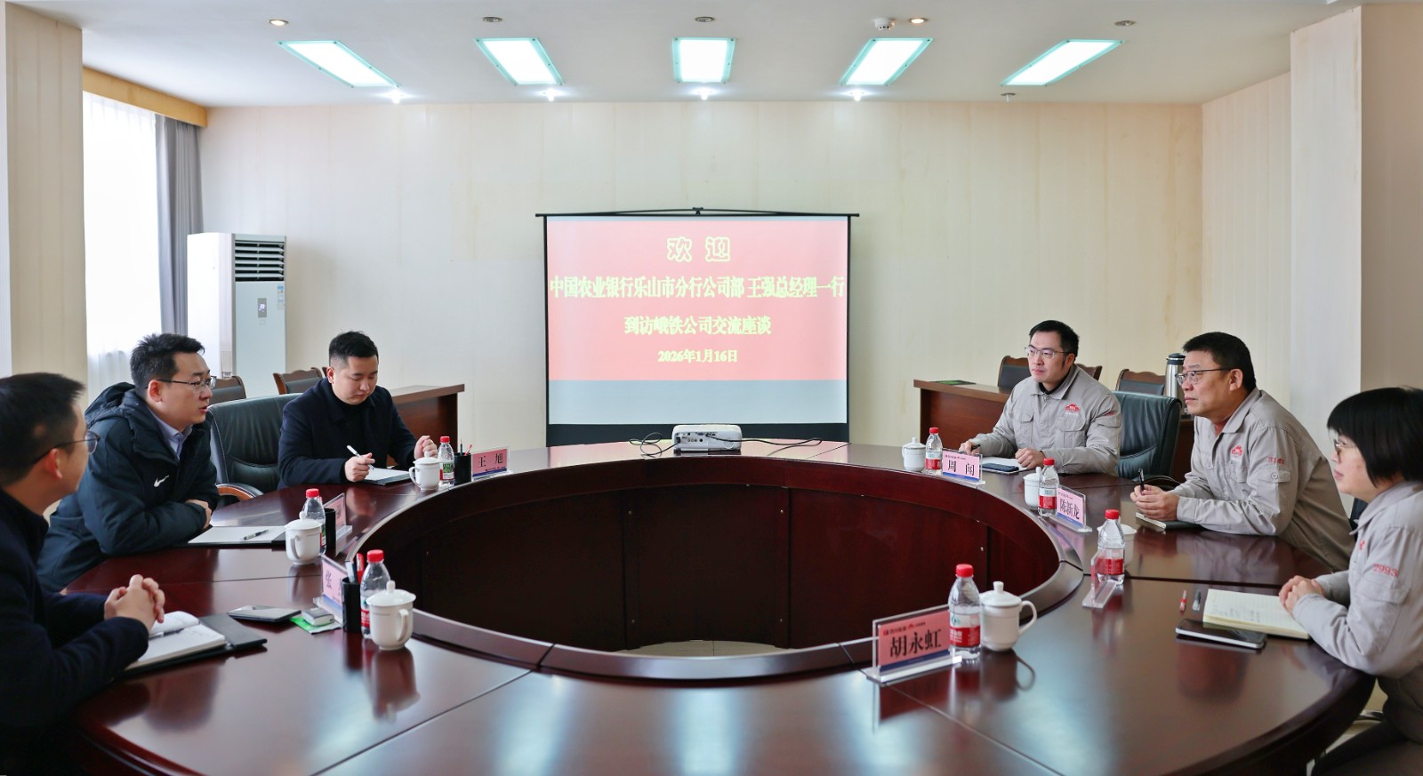 1月16日,中國(guó)農(nóng)業(yè)銀行樂(lè)山分行客戶部總經(jīng)理王強(qiáng)一行到訪川投峨鐵公司,公司黨委書(shū)記、董事長(zhǎng)、總經(jīng)理陳新龍參加座談交流。