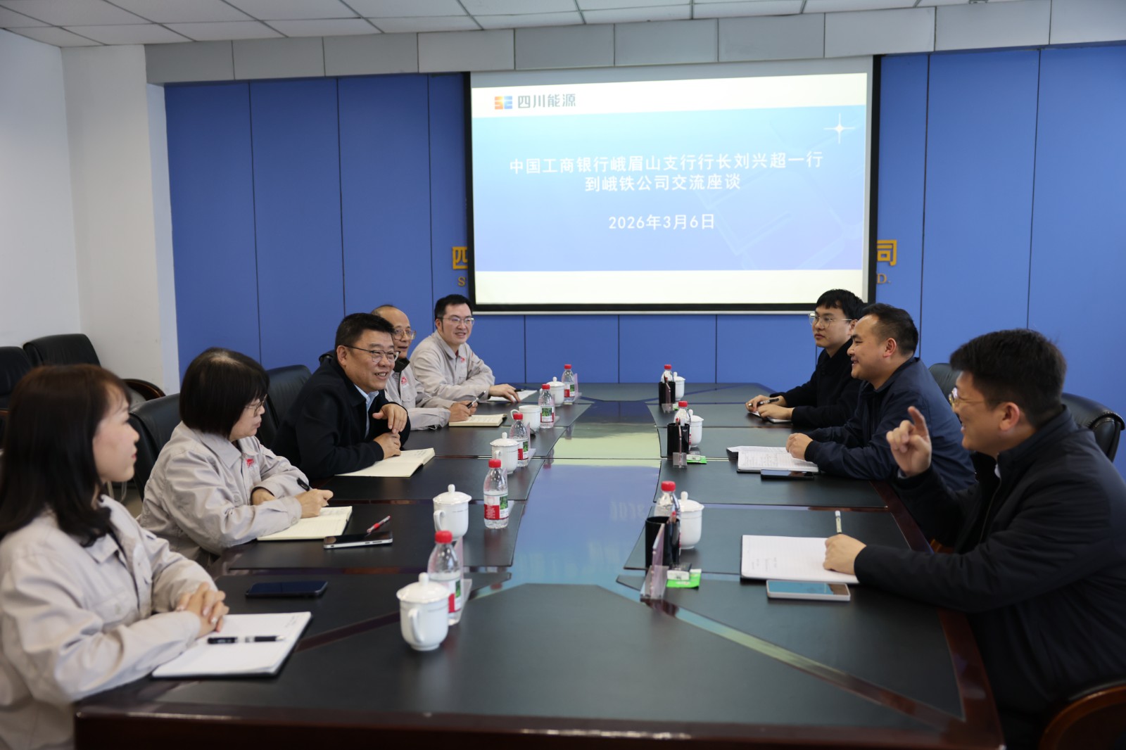 3月6日,中國工商銀行峨眉山支行行長劉興超一行到訪川投峨鐵公司,公司黨委書記、董事長陳新龍,黨委副書記、總經(jīng)理劉忠及財務(wù)部門相關(guān)負責人員參加座談交流。