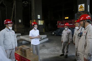 2018年8月24日川投集團(tuán)公司工會(huì)副主席、機(jī)關(guān)黨委書記白翠紅,黨群工作部副部長(zhǎng)張鵬舉一行蒞臨公司生產(chǎn)一線送清涼。